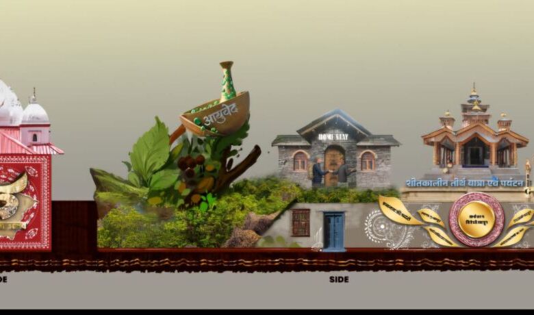 झांकी के ट्रेलर भाग में उत्तराखण्ड को आयुर्वेद के अग्रणी राज्य के रूप में प्रस्तुत किया गया है, जो राज्य की औषधीय पौधों एवं जड़ी-बूटियों की प्राचीन चिकित्सा पद्धति को रेखांकित करती है। ट्रेलर के द्वितीय खंड में उत्तराखण्ड की होम स्टे योजना को दर्शाया गया है। यहां यह प्रदर्शित किया गया है कि किस प्रकार देश-विदेश से आने वाले पर्यटक स्थानीय परिवारों के साथ ठहरने को प्राथमिकता दे रहे हैं, जिससे पर्यटन को बढ़ावा, स्थानीय रोजगार और सतत विकास को बल मिल रहा है। इसके पश्चात् झांकी में खरसाली स्थित यमुना मन्दिर को प्रदर्शित किया गया है, जो माँ यमुना का शीतकालीन धाम है। यह मंदिर अपनी पौराणिक मान्यताओं, आध्यात्मिक महत्व एवं हिमालय की गोद में स्थित शांत वातावरण के लिए विशेष रूप से प्रसिद्ध है।