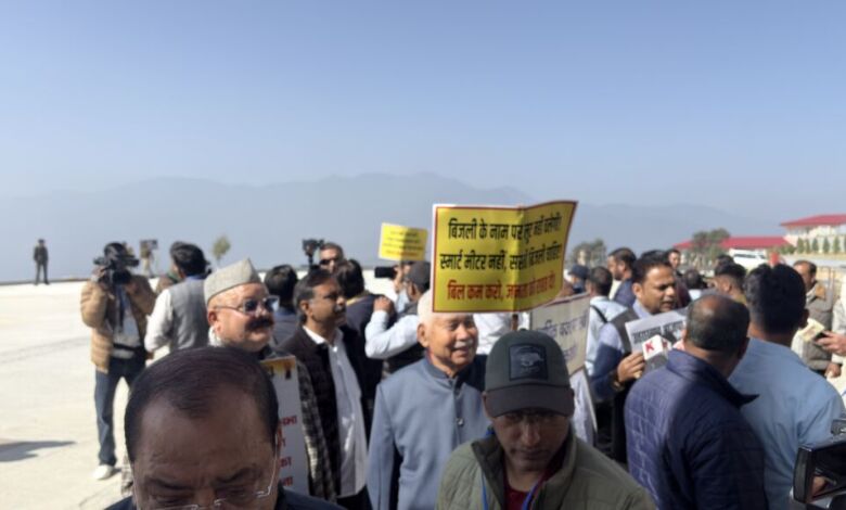 सत्र की अवधि बढ़ाने की मांग को लेकर कांग्रेस विधायकों ने किया प्रदर्शन