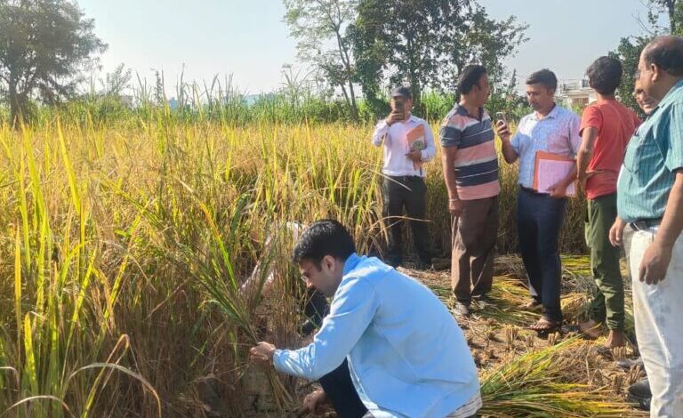 देहरादून। जिलाधिकारी सविन बंसल ने तहसील देहरादून के ग्राम आर्केडियाग्रांट में फसल धान के फसल कटाई प्रयोग का निरीक्षण किया। इस दौरान जिलाधिकारी ने कृषकों संग खेत में धान की कटाई भी की। जिसमें 43.30वर्ग मीटर के प्लॉट में 17 किलो 500ग्राम धान की उपज प्राप्त हुई प्रयोग का संपादन राजस्व उप निरीक्षक द्वारा जी सी ई एस एवं सीसीई एग्री ऐप द्वारा किया गया एवं खेत से ही उत्पादन के डाटा को भारत सरकार के पोर्टल पर अपलोड किया गया उक्त आंकड़ों का प्रयोग फसलों के औसत उपज एवं प्रधानमंत्री फसल बीमा योजना अंतर्गत किया जाता है।