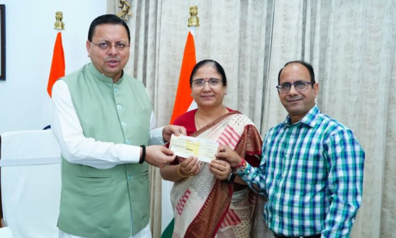 देहरादून। मुख्यमंत्री पुष्कर सिंह धामी से मुख्यमंत्री आवास में दून विश्वविद्यालय की कुलपति प्रो. सुरेखा डंगवाल ने शिष्टाचार भेंट की और इस अवसर पर मुख्यमंत्री को दून विश्वविद्यालय के सभी शिक्षकों, अधिकारियों एवं कर्मचारियों का एक दिन का वेतन मुख्यमंत्री राहत कोष में योगदान स्वरूप भेंट किया, ताकि आपदा प्रभावित लोगों की मदद की जा सके। मुख्यमंत्री पुष्कर सिंह धामी ने इस सामूहिक सहयोग भावना की सराहना करते हुए कहा कि “आपदा की इस घड़ी में दून विश्वविद्यालय का यह योगदान न केवल एक प्रेरक कदम है, बल्कि यह राज्य के शैक्षणिक संस्थानों की सामाजिक जिम्मेदारी और संवेदनशीलता को भी दर्शाता है।“