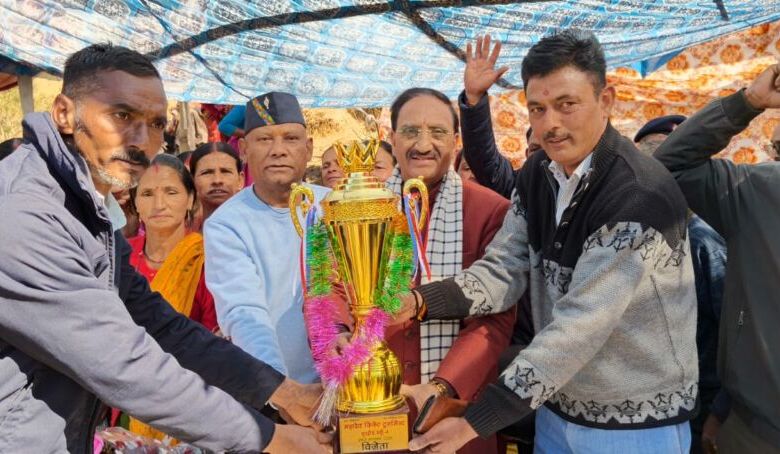 डॉ निशंक ने कहा कि हिमालय की गोद में जन्मे हर एक व्यक्ति में असीम संभावनाएं हैं,चाहे वह खेल के क्षेत्र में हो, सैनिकों का शौर्य पराक्रम, मातृ शक्ति की जिजीभिषा हो और चाहे राजनैतिक क्षेत्र रहा हो,यहां के जनमानस ने ऊंचाइयों को छुआ है। उन्होंने खेल के प्रति युवाओं के बढ़ते रुझान को सकारात्मक बताया। डॉ निशंक ने अपने बाल्यकाल का जिक्र करते हुए कहा कि जिन खेतों में आज टूर्नामेंट हो रहा है इन खेतों में हम हल जोतना,गोबर डालना उसके बाद फसल कटाई से हर वो काम किया जो आम गांव के आम व्यक्ति ने किया। उन्होंने युवाओं से कहा कि आप में लगन ,निष्ठा और समर्पण हो तो आप कुछ भी कर सकते हो,इसका जीता जाता उदाहरण मैं आप सबके बीच स्वयं हूं।उन्होंने भविष्य में यहां पर स्टेडियम बनाने की दिशा में भी राज्य सरकार से कार्यवाही करने को कहा। अपने पैतृक गांव आई डॉ निशंक की पुत्री विदूषी निशंक ने कहा कि उनकी स्वर्गीय माता की स्मृति में बनी कुसुम कांता फाऊंडेशन के माध्यम से खिलाड़ियों को हर वर्ष प्रोत्साहन राशि प्रदान करेंगे,साथ ही उन्होंने महिला मंगल दल और युवक मंगल दलों को भी मुख्य धारा से जोड़कर गांव को विकसित और समृद्ध करने की दिशा में काम करने की जरूरत है और वह स्वयं इसके लिए कृतसंकल्प है। इस अवसर पर पौड़ी ब्लाक प्रमुख स्मिता नेगी, पाबो के ज्येष्ठ प्रमुख राजपाल गुसाईं, थैलीसैंण के पूर्व ज्येष्ठ प्रमुख बाल कृष्ण चमोली, अनेकों प्रधान, क्षेत्र पंचायत सदस्य, महिला मंगल दलों की अध्यक्ष, युवक मंगल दल के अध्यक्ष सहित भारी संख्या में ग्रामीण और क्रिकेट प्रेमी उपस्थित थे। इसके पश्चात डॉ निशंक ने जबरौली महादेव में पूजा अर्चना की।