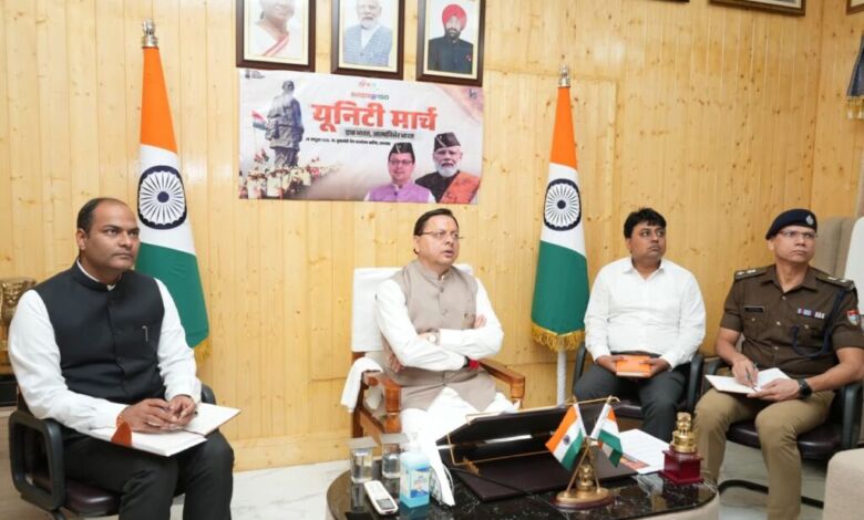देहरादून। मुख्यमंत्री पुष्कर सिंह धामी ने शुक्रवार को लोहियाहेड अतिथि गृह, खटीमा में राष्ट्रीय एकता के प्रतीक, लौह पुरुष सरदार बल्लभ भाई पटेल की 150वीं जयंती वर्ष के उपलक्ष्य में तैयारियों के सम्बध में वर्चुअल बैठक की। मुख्यमंत्री ने जिलाधिकारी को निर्देश दिए कि एकता मार्च के सफल आयोजन के लिए विस्तृत कार्ययोजना तैयार की जाए। उन्होंने कहा कि विद्यालयों और महाविद्यालयों में सांस्कृतिक एवं जन जागरूकता कार्यक्रमों का भव्य आयोजन किए जाए। उन्होंने कहा इस अभियान में युवाओं, महिलाओं, स्थानीय निकायों, एनसीसी, स्वयं सहायता समूहों, जनप्रतिनिधियों एवं विभिन्न सामाजिक संगठनों की सक्रिय भागीदारी भी सुनिश्चित की जाए। मुख्यमंत्री ने निर्देश दिए कि सभी तय कार्यक्रमों की जानकारी राज्य स्तर पर साझा की जाए, ताकि अभियान का संदेश अधिक से अधिक लोगों तक पहुंच सके। मुख्यमंत्री ने कहा अभियान का उद्देश्य राष्ट्रीय एकता का संदेश घर-घर तक पहुँचाना है। उन्होंने कहा कि सरदार वल्लभभाई पटेल के योगदान और एक भारत, श्रेष्ठ भारत के उनके संकल्प को जन-जन तक पहुँचाने के लिए इस कार्यक्रम को भव्य एवं प्रेरणादायक रूप में आयोजित किया जाए।